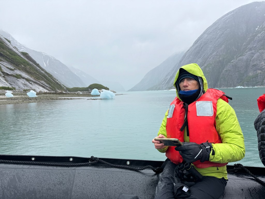 On the day we loaded into Zodiacs to travel up the Endicott Arm to the Dawes glacier, we donned every layer we had. The 38-degree cloudy morning had evolved into a 38-degree rainy afternoon.