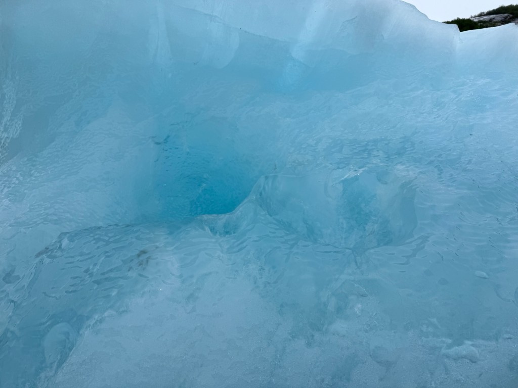 Before the cold, windy ride through the rain and ice chunks, the glacier had been an object of awe-inspiring visual beauty and intellectual interest.