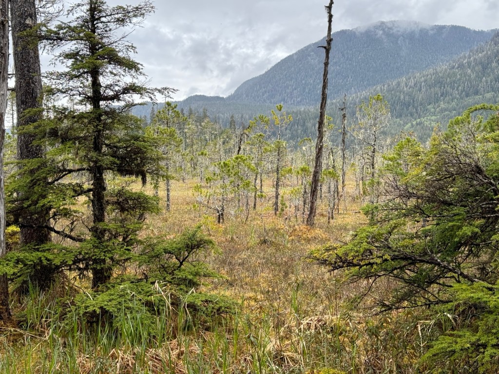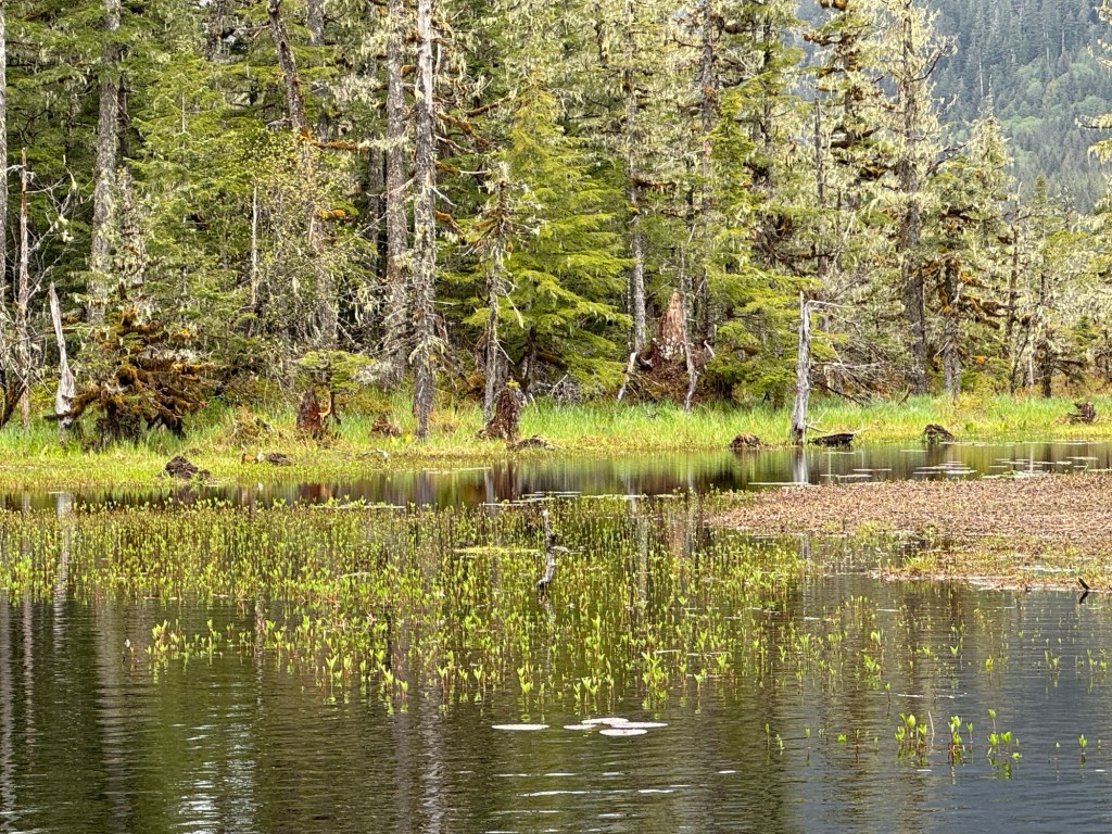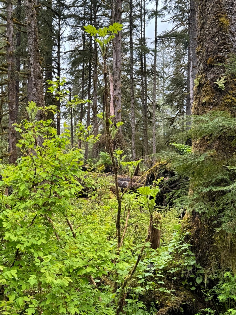 In the saddles, lichen, then blueberries appear in a few years. Alders, considered the “weed” of trees by locals, start spreading in 10-20 years, then spruce, cedar, and hemlock appear over the next few decades.