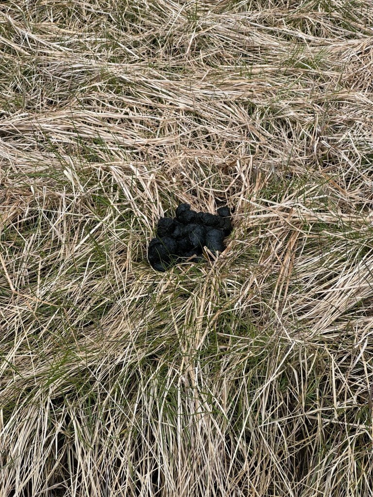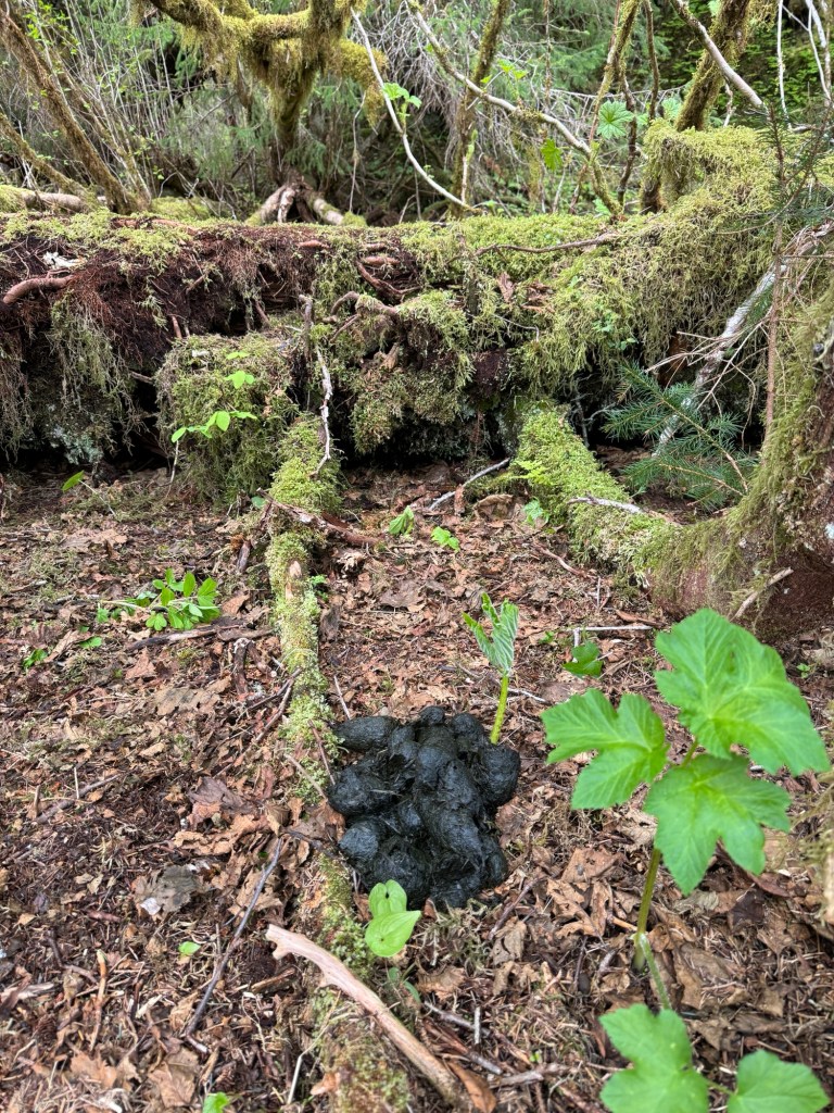 First, below is bear scat—two well-formed, plentiful, fresh piles—seen near a tidal wetland.