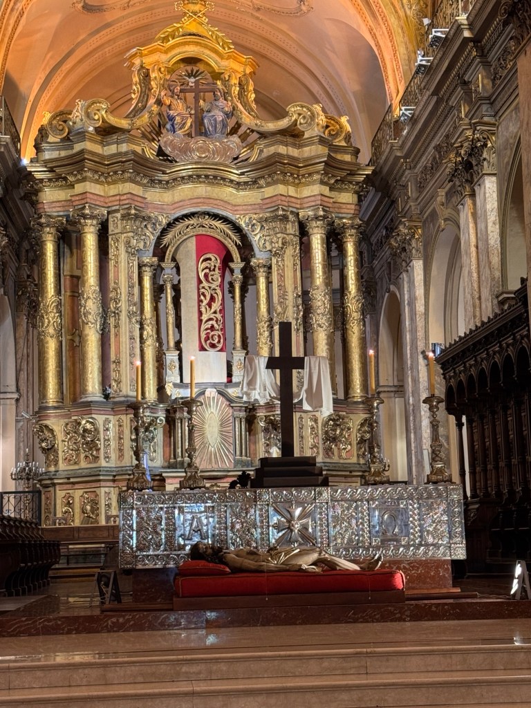 In the large cathedral on la Plaza de Mayo, the main square, we saw that a life-size representation of Jesus’s body lay on a bed in front of the altar.