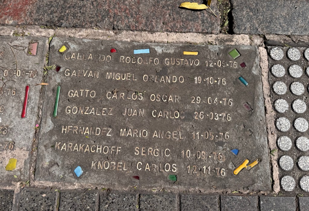 Along the streets lining the plaza are hundreds of plaques that name those who were kidnapped and never seen again.