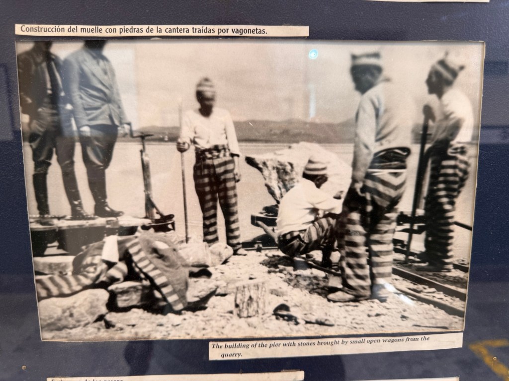 First, the inmates built their own prison. They continued to expand it for about 20 years. During that time, they chopped down trees and broke rocks, laid railroad tracks, used the tracks to carry the rocks, and built the harbor. They also built streets and civic buildings.